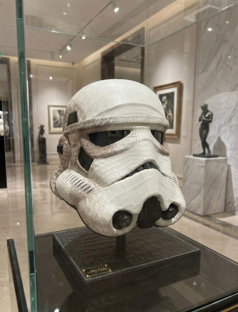 Un babyfoot recouvert de crocodile véritable et patiné vert émeraude. Un casque gainé à la main. Des objets totémiques sur mesure pour des intérieurs d’exception. Chaque pièce naît d’une conversation, prend forme dans notre atelier parisien, et n’existe qu’une seule fois.